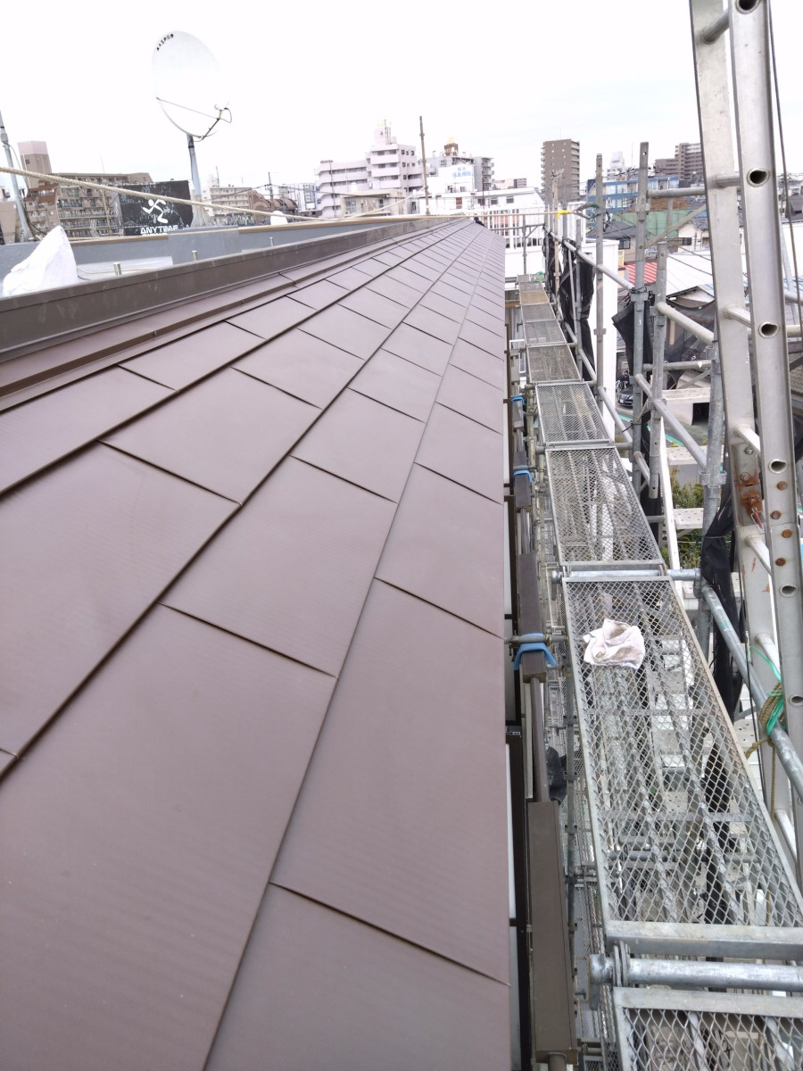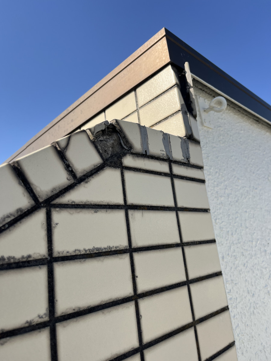 【施工実績】屋根改修工事(熊谷市アパート) 2026/03/31 【施工実績】屋根改修工事(熊谷市 アパート) ■施工前 経年劣化により、タイルが剥離し落下してきておりました。 ■施工中 ■施工後 タイル打診の結果80%以上の部分で浮きがありましたので、既存タイルを剝がしたところ下地も劣化していた為、今後のタイル落下を防ぐ為に下地から左官仕直し、板金屋根を新設しました。 ■施工内容 ・屋根改修工事 ■お客様の声 タイルが落ちてきて、心配していましたが、これで安心です。早い対応ありがとうございました。 ■ビフォーアフター ・before ・after